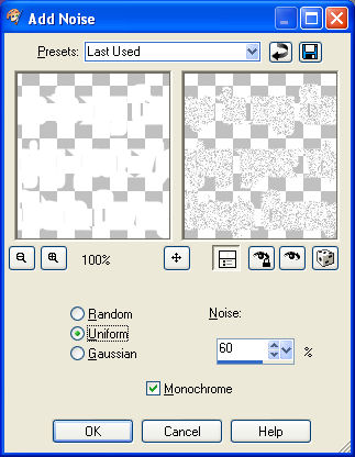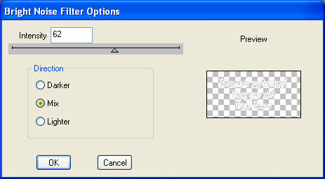 Now here were using the plug in dsb flux, bright noise, if you don't have it you can just use the add noise under the adjust option in psp 9. The settings are below for both. You just do it to each white layer.