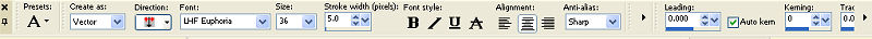 First Open your font, you don't have to install it into psp, if you just open it, then you can choose it in psp! Then create a new raster layer 400x200 pixels and fill with any color you like. Now choose these settings for your font, font size 36 and stroke 5, as seen in pic below: